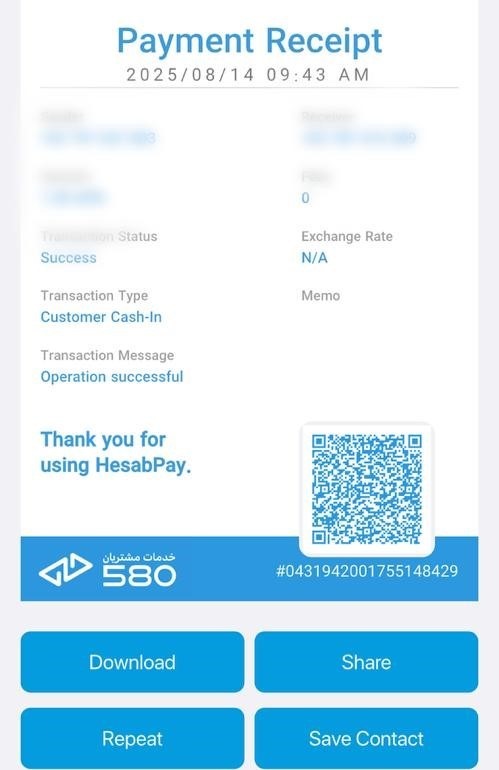 On the Bozor page, you can view your money transfer transactions, whether completed by scanning a QR code or using a HesabPay account number.